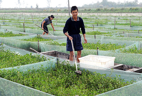 | 10月12日,新建縣鐵河鄉(xiāng)方洲特種養(yǎng)殖場(chǎng)的職工在給網(wǎng)箱養(yǎng)殖的黃鱔喂餌料。近年來(lái),江西省南昌市新建縣充分利用湖港、湖汊等水域資源,大力推廣網(wǎng)箱養(yǎng)鱔、魚(yú)蝦混養(yǎng)等特種養(yǎng)殖模式。目前,該縣養(yǎng)殖基地的網(wǎng)箱已達(dá)到6萬(wàn)多個(gè),每個(gè)網(wǎng)箱每年能給當(dāng)?shù)剞r(nóng)民帶來(lái)300多元的純收入。 | |