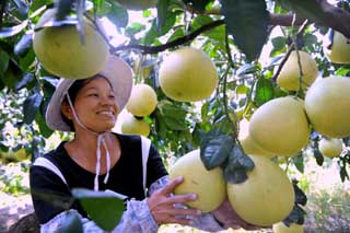 10月23日,福建省漳州市南靖縣書洋鎮(zhèn)上田村果農(nóng)陳水霞在采摘蜜柚。 近年來,當(dāng)?shù)剞r(nóng)民大力發(fā)展蜜柚、香蕉、荔枝等特色農(nóng)業(yè),僅蜜柚種植面積全市就達(dá)60多萬畝,年產(chǎn)量70多萬噸,產(chǎn)品暢銷全國各大城市并遠(yuǎn)銷東盟國家,蜜柚生產(chǎn)已成為當(dāng)?shù)剞r(nóng)民增收的重要途徑。 |
