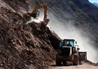 11月2日,作業(yè)車輛在國(guó)道214線上清理塌方。
