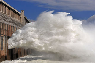 江水通過三峽泄洪壩下泄(攝于11月7日)。 | 中國三峽總公司11月7日晚發(fā)布消息稱,11月4日,三峽工程壩前水位達(dá)到海拔高程172.3米,2008年試驗(yàn)性蓄水任務(wù)完成。蓄水期間,各項(xiàng)監(jiān)測(cè)數(shù)據(jù)表明,各樞紐建筑物變形、基礎(chǔ)滲流及應(yīng)力應(yīng)變測(cè)值均在正常范圍內(nèi),樞紐建筑物工作性態(tài)正常;機(jī)組、船閘均處于正常運(yùn)行狀態(tài);近壩庫區(qū)地震活動(dòng)正常,庫岸基本穩(wěn)定,沒有發(fā)生大面積庫岸崩塌、滑坡現(xiàn)象;泥沙觀測(cè)正常;蓄水前后庫區(qū)水質(zhì)與水體環(huán)境無類別變化。蓄水期間,加強(qiáng)了漂浮物清理,對(duì)發(fā)電、航運(yùn)沒有造成不利影響。 |
