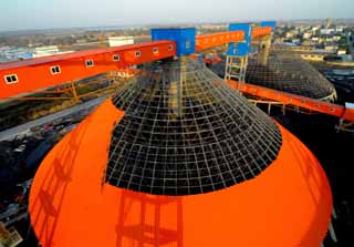 為了避免生產(chǎn)過程中產(chǎn)生的噪音和粉塵等污染,淮北礦業(yè)集團日前臨渙工業(yè)園興建巨型全封閉鋼網(wǎng)架穹頂中矸儲煤場,煤炭儲存和輸送過程將全部在封閉狀態(tài)中進行。