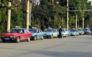 11月13日,出租車在武漢市中北路的一個(gè)加氣站前排隊(duì)等待加氣。