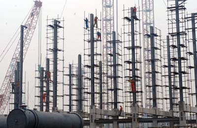 天津石化100萬噸/年乙烯及配套項(xiàng)目建設(shè)工程已經(jīng)過半,累計(jì)完成投資123.77億元,目前進(jìn)入大型設(shè)備吊裝高峰期。該項(xiàng)目總投資268億元,預(yù)計(jì)2009年9月建成投產(chǎn)。
