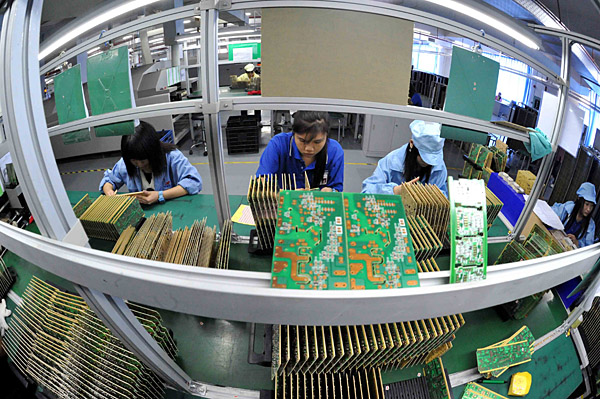 11月17日,工人在位于佛山順德的瑞德電子集團(tuán)車間中工作。 為幫助區(qū)內(nèi)的約2萬(wàn)家中小企業(yè)渡過(guò)難關(guān),佛山市順德區(qū)投入財(cái)政資金5000萬(wàn)元,為中小企業(yè)融資提供擔(dān)保,到目前為止,已幫助中小企業(yè)貸款3億元;同時(shí)大力幫助中小企業(yè)開(kāi)拓國(guó)內(nèi)外市場(chǎng),對(duì)南美、東歐等地新興市場(chǎng)的出口額大幅增長(zhǎng),今年1到9月中小企業(yè)出口額113億美元,同比增長(zhǎng)12.8%。 | |