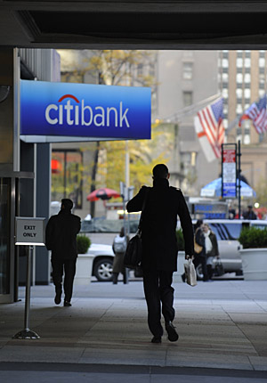 17日,人們從美國紐約的花旗集團總部大樓前經(jīng)過。花旗集團當日宣布計劃再裁員5.2萬人,約占其員工總數(shù)的14%。新華社/法新