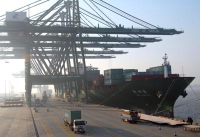 12月14日,“新煙臺(tái)”輪在天津東疆保稅港區(qū)裝載集裝箱!靶聼熍_(tái)”輪載重量6.8萬(wàn)噸,總長(zhǎng)279.6米,型寬40.3米,航速26節(jié),可裝5688標(biāo)準(zhǔn)箱,2005年1月下水,是目前國(guó)際航速最快、船舶設(shè)備比較先進(jìn)的大型集裝箱船。 12月15日,中國(guó)海運(yùn)所屬的“新煙臺(tái)”輪將作為津臺(tái)海運(yùn)直航的首班貨輪,從天津港太平洋國(guó)際集裝箱碼頭啟程直航臺(tái)灣基隆港,天津?qū)⒊蔀榇箨懯着_(kāi)辟兩岸海運(yùn)直航的港口之一。 |