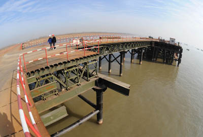 這是已搭建完成的南京長(zhǎng)江四橋北塔江中施工棧橋(12月23日攝)。