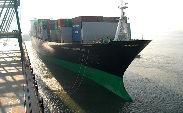 1月2日,臺(tái)灣長(zhǎng)榮海運(yùn)公司旗下的“榮欽輪”駛進(jìn)天津東疆保稅港區(qū)。當(dāng)日,長(zhǎng)榮海運(yùn)公司調(diào)整遠(yuǎn)東/美西航線,加靠天津港,首班船“榮欽輪”到達(dá)天津,該航線共投入5艘最大載箱量5000至6000標(biāo)準(zhǔn)箱的船舶,每周一班,沿線靠港順序?yàn)椋禾旖颟ど虾)幉īで鄭u─洛杉磯─奧克蘭─天津。