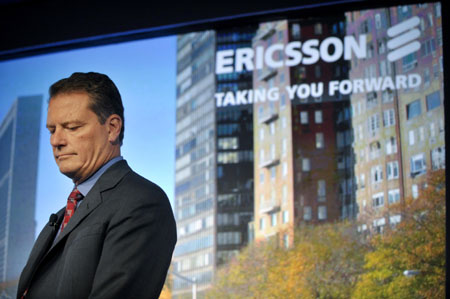 1月21日,瑞典移動通信設(shè)備制造商愛立信公司總裁思文凱出席在瑞典首都斯德哥爾摩召開的新聞發(fā)布會。 愛立信當(dāng)天公布了2008年第四季度財(cái)報(bào)。報(bào)告稱,受經(jīng)濟(jì)形勢影響,愛立信第四季度凈利潤下滑30%,公司還宣布將削減5000個(gè)職位以削減成本。