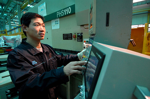 日前,留守在杭州西子奧的斯電梯有限公司的安徽籍機床技工武杰峰在生產(chǎn)車間檢修和保養(yǎng)設(shè)備。