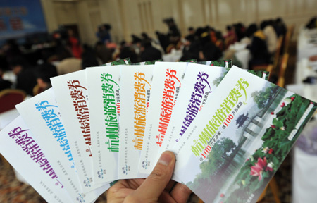 。 當(dāng)天,杭州舉行新聞發(fā)布會,介紹剛剛推出的“杭州旅游消費(fèi)券”,本次杭州及下屬7縣市發(fā)放的旅游消費(fèi)券共240萬套,總額為1.5億元,可以在指定商家使用,預(yù)計(jì)將在當(dāng)?shù)乩瓌?0億元的旅游消費(fèi)。杭州旅游消費(fèi)券將通過媒體、網(wǎng)站、銀行、旅行社、行業(yè)協(xié)會等渠道向內(nèi)地及港澳臺地區(qū)的旅游者發(fā)放,發(fā)放的截止時(shí)間為3月15日。 |