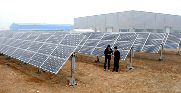 3月5日,保定市科諾偉業(yè)公司工作人員在單軸跟蹤式太陽能發(fā)電系統(tǒng)前工作。日前,由保定市科諾偉業(yè)公司研發(fā)的雙軸、單軸跟蹤式太陽能光伏發(fā)電站問世。這種發(fā)電站的太陽能電池板就像向日葵一樣,通過實(shí)時(shí)跟蹤太陽運(yùn)動(dòng),增強(qiáng)了太陽輻射接收量,可使發(fā)電量提高20%至40%。