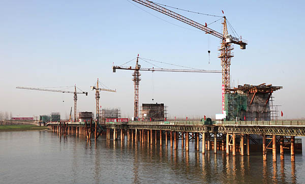 京滬高鐵淮河特大橋主橋部分加緊施工