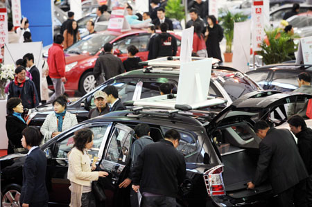 4月15日,2009年沈陽春季車展在遼寧工業(yè)展覽館開幕。展會期間,參展企業(yè)將推出系列優(yōu)惠活動,包括價格直降、贈送保養(yǎng)、贈送油票和裝飾等。圖為市民在沈陽春季車展上參觀。