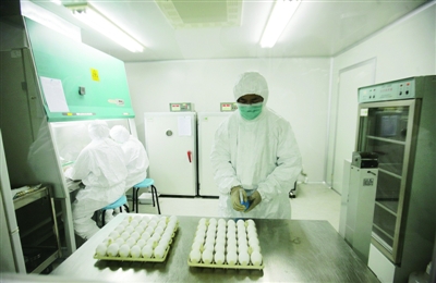 6月8日,科研人員在進行毒株種子批的制備工作。當日,來自美國的甲型H1N1流感疫苗生產(chǎn)用毒株NYMCX-179A,從美國運抵北京,并經(jīng)過通關(guān)、檢驗檢疫等手續(xù)后,送抵北京科興生物制品有限公司。已經(jīng)完成疫苗臨床研究工作的北京科興當晚啟動了毒株種子批的制備工作,這標志著甲型H1N1流感疫苗的批量生產(chǎn)正式啟動,并有望于7月底生產(chǎn)出首批疫苗。