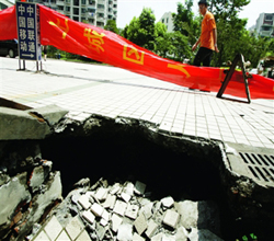 7月1日清晨,杭州市飛云江路鳳凰南苑高層住宅區(qū)里的很多居民先后發(fā)現(xiàn)24層住宅樓前發(fā)生約十平方米坍塌,留下深約一米的大坑。開(kāi)發(fā)單位杭州市房地產(chǎn)聯(lián)合開(kāi)發(fā)總公司工程部有關(guān)負(fù)責(zé)人2日在接受記者采訪時(shí)表示,他們正在和專業(yè)鑒定機(jī)構(gòu)簽署協(xié)議,委托鑒定,給小區(qū)居民一個(gè)權(quán)威說(shuō)法。新華社發(fā) |
