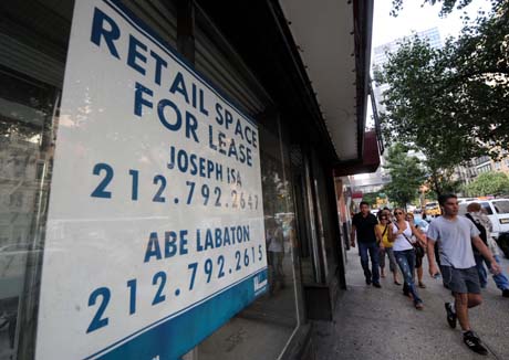 22日,行人從美國(guó)紐約曼哈頓一處正在招租的門(mén)面房前經(jīng)過(guò)。據(jù)《紐約時(shí)報(bào)》21日?qǐng)?bào)道,隨著紐約居民削減日常開(kāi)支,紐約街頭的連鎖店、家庭式店鋪等商店已開(kāi)始逐步減少。而據(jù)全美大型房地產(chǎn)經(jīng)紀(jì)公司馬庫(kù)斯·米利切普的統(tǒng)計(jì),曼哈頓地區(qū)目前門(mén)面房的空置率達(dá)6.5%,為近20年來(lái)最高,預(yù)計(jì)到2010年年中將達(dá)10%。 |
