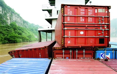 發(fā)生事故的集裝箱船上部分集裝箱落水(8月11日攝)。一艘裝載有危險(xiǎn)化學(xué)品的集裝箱滾裝船10日深夜在長(zhǎng)江三峽大壩—葛洲壩水域發(fā)生集裝箱落水事故,幸無(wú)人員傷亡。目前已知有62個(gè)集裝箱落入江中,其中部分屬于;芳b箱。長(zhǎng)江海事局已啟動(dòng)應(yīng)急預(yù)案,派出4艘海事巡邏艇趕赴現(xiàn)場(chǎng)開展應(yīng)急處置及海事調(diào)查工作,并調(diào)集大馬力拖輪前往現(xiàn)場(chǎng)施救。同時(shí),進(jìn)行船閘控制運(yùn)行,協(xié)調(diào)梯調(diào)中心控制葛洲壩下泄流量。新華社發(fā)