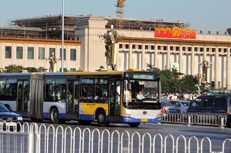 8月27日,一輛公交汽車在北京長安街上行駛。為保障8月29日天安門廣場國慶演練活動的順利進(jìn)行,從8月28日夜間起,北京市部分公交、地鐵線路將根據(jù)交通管制情況,適時調(diào)整運(yùn)營方案。其中,沿線公交線路將甩站繞行,地鐵將采取提前收車、局部封站等措施。