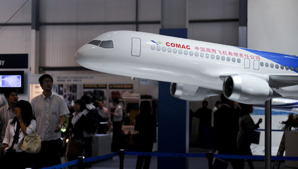 9月23日,參觀者在參觀國產(chǎn)大飛機(jī)C919模型。 當(dāng)日,中國航空工業(yè)集團(tuán)公司、中國商用飛機(jī)有限責(zé)任公司等中國航空企業(yè)亮相第十三屆北京國際航空展覽會(huì),所展示的殲8T飛機(jī)、“梟龍”戰(zhàn)機(jī)、“山鷹”高級(jí)教練機(jī)模型以及前不久剛剛在香港首次亮相的國產(chǎn)大飛機(jī)C919模型等,引起廣泛關(guān)注。