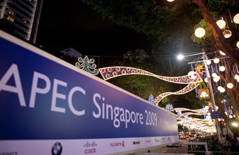 11月7日,在新加坡著名商業(yè)街烏節(jié)路,圣誕燈光璀璨,亞太經(jīng)合組織(APEC)宣傳海報(bào)懸掛在路邊。為迎接亞太經(jīng)合組織系列會(huì)議,烏節(jié)路的圣誕亮燈儀式今年提前舉行,以便讓與會(huì)來賓能夠感受新加坡獨(dú)特的“熱帶圣誕節(jié)”氣氛。新華社記者