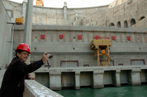 被譽(yù)為“萬里黃河第一壩”的龍羊峽水電站,自1987年投產(chǎn)運(yùn)營(yíng)以來,至今年累計(jì)發(fā)電突破920億千瓦時(shí)。圖為一游客在龍羊峽水電站壩底觀光拍照。