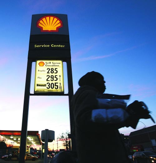 1月6日,在美國紐約,一名行人從一個加油站的油價(jià)牌下走過。由于美元走軟抵消了美國原油商業(yè)庫存意外增加的影響,國際油價(jià)6日繼續(xù)上揚(yáng),并一舉突破每桶83美元。
