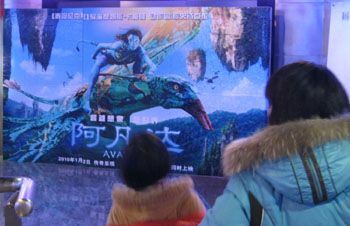 圖為觀眾路過北京一家影院貼出的《阿凡達》巨幅海報。新華社記者 張燕輝/攝 |