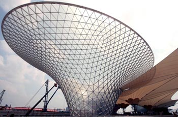 上海世博會(huì)世博軸“陽(yáng)光谷”。上海世博園集成了大跨度索膜結(jié)構(gòu)、“陽(yáng)光谷”自然采光、雨水收集與回用、江水源和地源熱泵調(diào)控室溫以及冰蓄冷空調(diào)、光伏發(fā)電與建筑一體化、透水地面、垃圾氣力輸送、半導(dǎo)體照明、垂直生態(tài)綠化幕墻、節(jié)能電梯等一大批創(chuàng)新科技。新華社記者