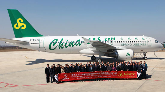 3月10日,春秋航空公司在空客天津交付中心首次接收空客天津總裝線組裝的飛機,這架A320飛機是空客天津總裝線完成總裝的第16架飛機。據(jù)介紹,截至2010年1月,中國共有12家航空公司運營著454架空客A320系列飛機。