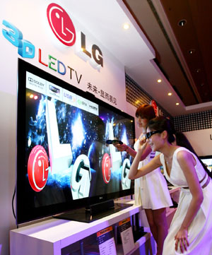 4月6日,LG在北京一舉推出了包括電視機(jī)、冰箱、洗衣機(jī)、空調(diào)等在內(nèi)的全線新品。其中,最具代表性、也是最受矚目的當(dāng)數(shù)LG首次亮相的Full LED 3D電視——LX9500和72寸的LEX9。 據(jù)了解,LEX9是目前全球最大的3D電視,達(dá)到72英寸,而另一款55英寸的LX9500的邊框?qū)挾冗不到1厘米,機(jī)身厚度也僅為2.33厘米,掛在墻上更強(qiáng)化了“壁畫感”。由于LEX9和LX9500都采用了Full LED技術(shù),極大提高畫面對比度和亮度,使得暗黑更黑,鮮亮更亮,層次分明。 圖為LG全球最大的3D電視LEX9。 |