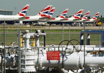 5月24日,由于英國航空公司聯(lián)合工會與英航管理層進行的談判無果而終。圖為英國航空公司的飛機停在希思羅機場。新華社/法新 |
