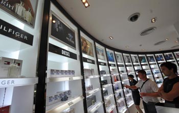 三亞免稅店內(nèi)游客正在選購(gòu)免稅商品。記者 郭程 攝