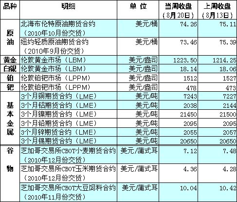 國際大宗商品期貨價格明細(xì)表