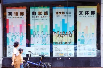 一對(duì)母子從一教育培訓(xùn)機(jī)構(gòu)廣告牌前經(jīng)過。記者 李興文