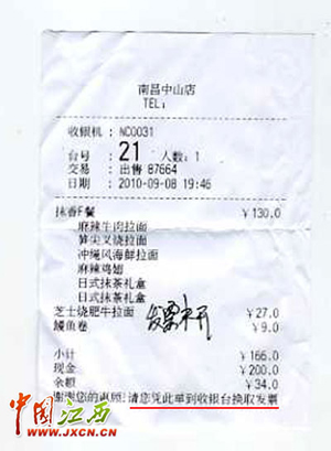 “不好意思,沒有發(fā)票”、“發(fā)票用完了!”9月7日,市民楊小姐致電本網(wǎng)新聞熱線反映,南昌市中山路味千拉面(中山店)經(jīng)常拒開發(fā)票。