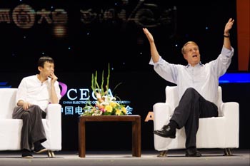 兩年前,當淘寶網(wǎng)與eBay在中國市場爭奪得你死我活的時候,人們怎么也不會想到這倆對頭會坐下來平心靜氣的促膝長談。但在不久前的網(wǎng)商大會上,這一幕卻發(fā)生了:在風(fēng)景優(yōu)美的西湖邊,這兩位巨頭比肩而坐,在握手言和之際,還談笑風(fēng)生地共話十年后的電子商務(wù)前景與個人夢想。