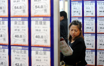 近日,在天津國際展覽中心,一名市民在2010秋季天津房交會(huì)上的售樓信息板前駐足。新華社記者 李木子