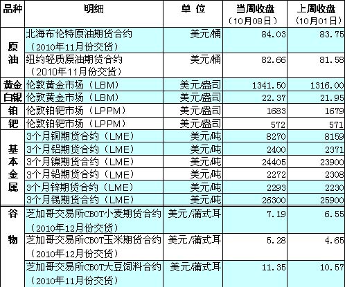 國際大宗商品期貨價格明細表