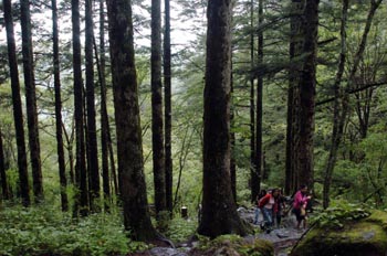 觀測(cè)資料顯示,森林區(qū)比無(wú)林區(qū)的降水量最多可增加25%。森林涵養(yǎng)水源,每公頃森林地面的凋落物層,能吸收11噸到33噸水,林地水分下滲率是農(nóng)耕地和牧草地的三到12倍,在月降水量不超過(guò)80到90毫米時(shí),林地?zé)o地表徑流發(fā)生,森林可使降水的50%到80%滲入地下,一畝林地至少比一畝無(wú)林地多蓄水20立方米,每公頃森林每天從地下吸收70到100噸