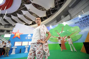 在第三屆中國(guó)生物產(chǎn)業(yè)大會(huì)上,由長(zhǎng)春大成集團(tuán)利用玉米為原料制作的服裝吸引了眾多參觀者的目光。資料圖片