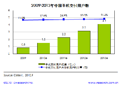 “2011年將成為手機(jī)支付爆發(fā)元年!”這個爆炸性消息來自計世資訊不久前發(fā)布的《2009-2010年中國手機(jī)支付市場趨勢研究報告》。報告顯示,2010年手機(jī)支付用戶有望突破1.5億,2011年達(dá)到2.5億戶,預(yù)計2010年底市場規(guī)模將突破35億元,2011年市場收入規(guī)模預(yù)計將達(dá)到80億元。
