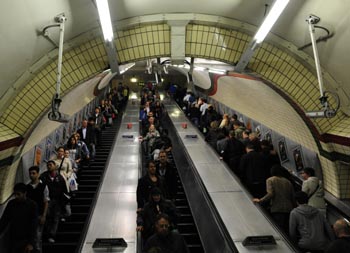 10月2日,在英國首都倫敦的一個(gè)地鐵站內(nèi),人們乘坐電梯。新華社記者 曾毅/攝 |
