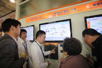 10月12日,在北京舉行的國際信息通信展覽會上,工作人員向觀眾介紹“三網(wǎng)融合”系統(tǒng)。目前艱難推進(jìn)的三網(wǎng)融合期待實質(zhì)性的破冰之舉。新華社 陳曉根/攝 |