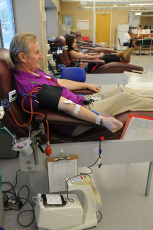 近日,記者在加拿大血液服務中心設在溫哥華市奧克街的獻血中心采訪,看到該獻血中心剛開門兩個多小時,就接待了10多位事先預約或直接上門的獻血者。45歲的建筑工人德林·道爾胸前貼著“首次獻血者”標簽。他說,這其實不是他生平第一次獻血,而是他近八九年來第一次獻血。他曾經(jīng)在幾年時間里獻血30多次,由于高血壓而不得不暫停獻血,F(xiàn)在他的血壓已經(jīng)得到了控制,所以他可以“復出”了。他絲毫不認為繼續(xù)獻血會有損他的健康。他表示,他之所以獻血,是因為這可以幫助挽救他人的生命。從獻血臺下來,德林到一旁的休息區(qū)喝了點果汁,吃了兩塊餅干,然后離去。