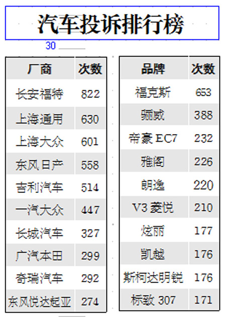 · 汽車投訴排行榜[2010-11-11] 2010-11-11