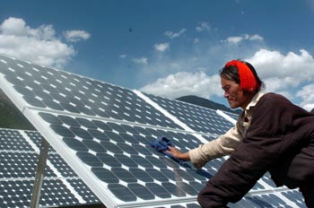 在西藏,太陽(yáng)能資源已被廣泛用于照明、通訊、廣播電視、燒水做飯、取暖等領(lǐng)域。記者 劉泉龍/攝 |
