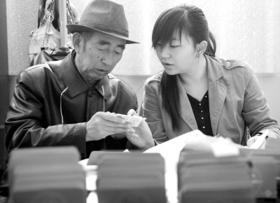 ▲鄂爾多斯市構(gòu)建覆蓋城鄉(xiāng)的居民養(yǎng)老保險(xiǎn)體系東勝區(qū)社保局的工作人員在為趙勝元老人(左)辦理領(lǐng)取養(yǎng)老保險(xiǎn)金的存折。近年來(lái),鄂爾多斯市政府安排專項(xiàng)資金用于城鄉(xiāng)居民養(yǎng)老保險(xiǎn)工作,將全市符合參保條件的80萬(wàn)農(nóng)牧民和城鎮(zhèn)無(wú)業(yè)居民納入養(yǎng)老保險(xiǎn)范圍,全面建設(shè)覆蓋城鄉(xiāng)的居民養(yǎng)老保險(xiǎn)體系。