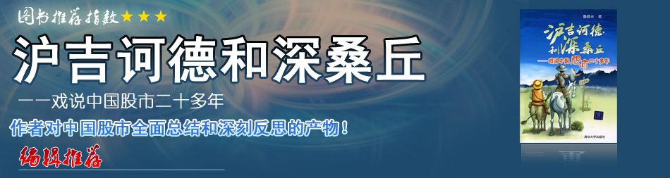 | 魯先生的這本書,用詼諧幽默的筆調,通過描述滬吉訶德與深桑丘主仆在股指山上的經(jīng)歷,還原了中國股市二十多年來的歷史。對老股民來說,是重溫歷史,總結經(jīng)驗教訓;對新股民來說,則是一本通俗易懂的教材。 |