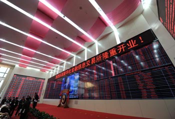 新華社金融信息交易所在北京開業(yè)。本報(bào)記者 羅曉光/攝 |